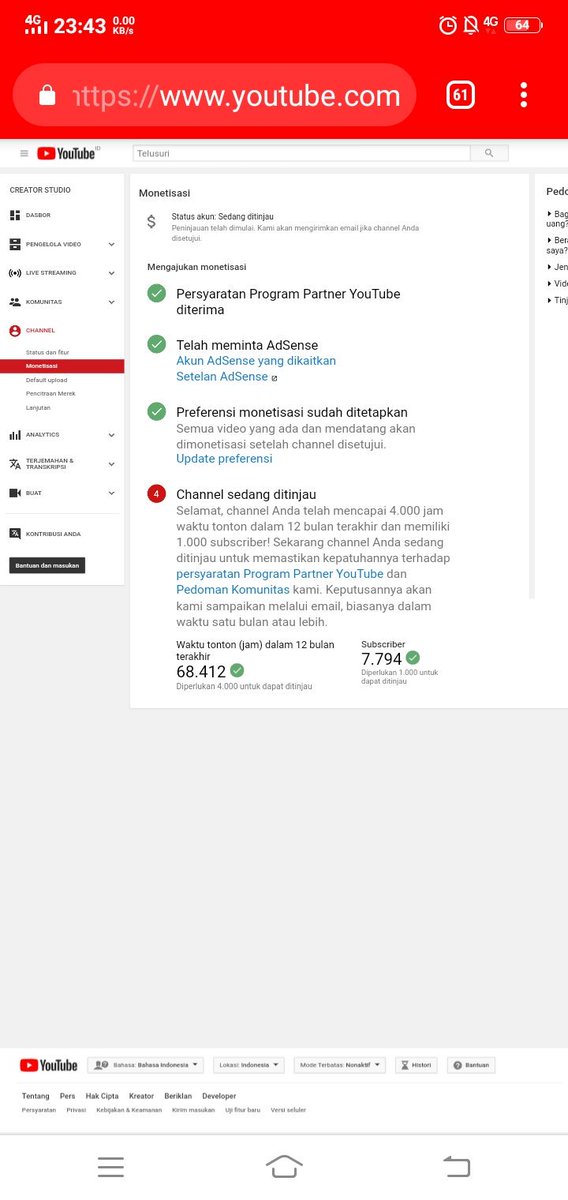 @TeamYouTube yang terhormat, saya mohon akun saya untuk diberitahukan hasil peninjauannya. Sudah hampir 4 bulan belum ada kabar, apakah saya ditolak atau diterima menjadi mitra. Mohon bantuannya. Terimakasihpic.twitter.com/Gj4KJu5gBp