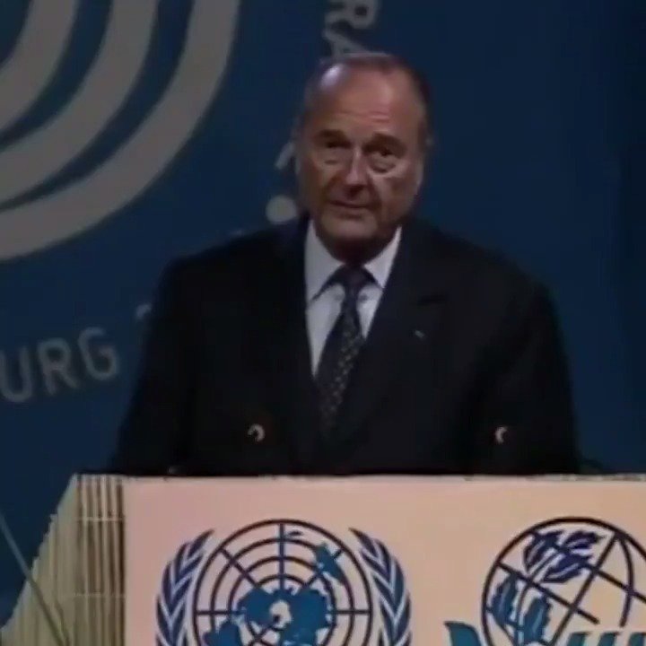 Jacques Chirac a tenu ces propos en 2002, au sommet de la Terre de Johannesburg en Afrique du Sud. Son cri pessimiste lancé devant l'assemblée plénière avait marqué les esprits. Nicolas Hulot était alors conseiller pour l'environnement de Jacques Chirac.https://twitter.com/EmmanuelMacron/status/1177294104000118785 …