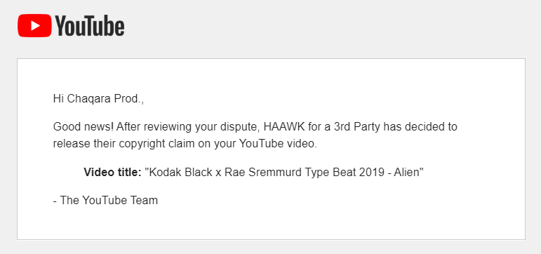Well, @TeamYouTube @HaawkINC , This response surprisingly happened within 24 hours. Thanks for reviewing this beat so quickly! #youtube #copyright #claimpic.twitter.com/PibWtMGzK4