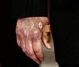 No people! I'm a nurse it is not a port! There is no way that area is stable for a port! A port is an access that stay in places for months for meds chemo etc. Ports are never placed in hands! IV's would NEVER be placed in that area of his hand especially at his age!
