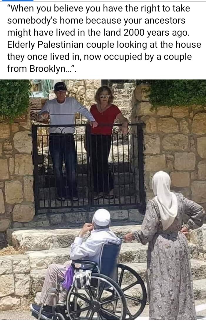 If I told you I'd traced some of my ancestors back to Normandy 956 years ago, and therefore claimed the right to a chateau there, you'd think I was nuts, This is the logic of Israeli settlers forcibly evicting Palestinians from their homes ..pic.twitter.com/Pw3ULWAe5O