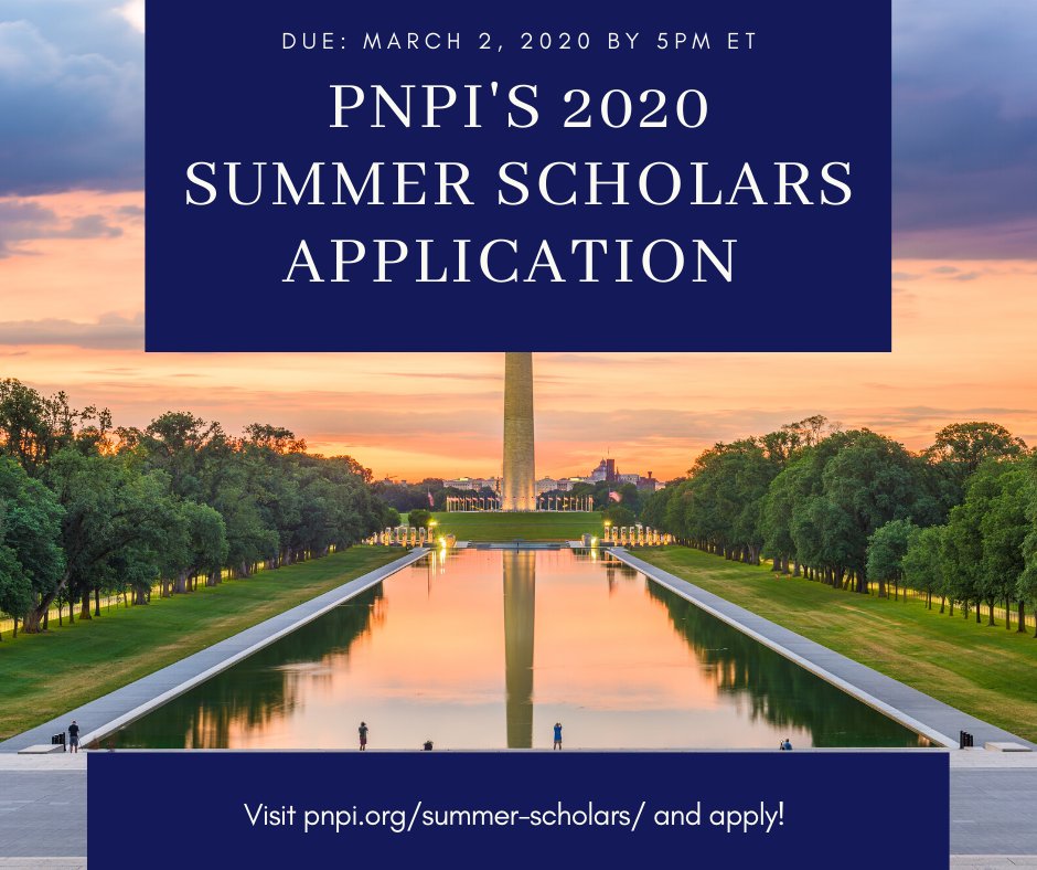 @ThePNPI's#2020SummerScholars application is OPEN! It's a great opportunity for undergrad and grad scholars to learn about#highered policy in DC. Scholars are paid, and receive housing, a move-in stipend and more. https://bit.ly/31kKd40 pic.twitter.com/QQRQ5aRt7c