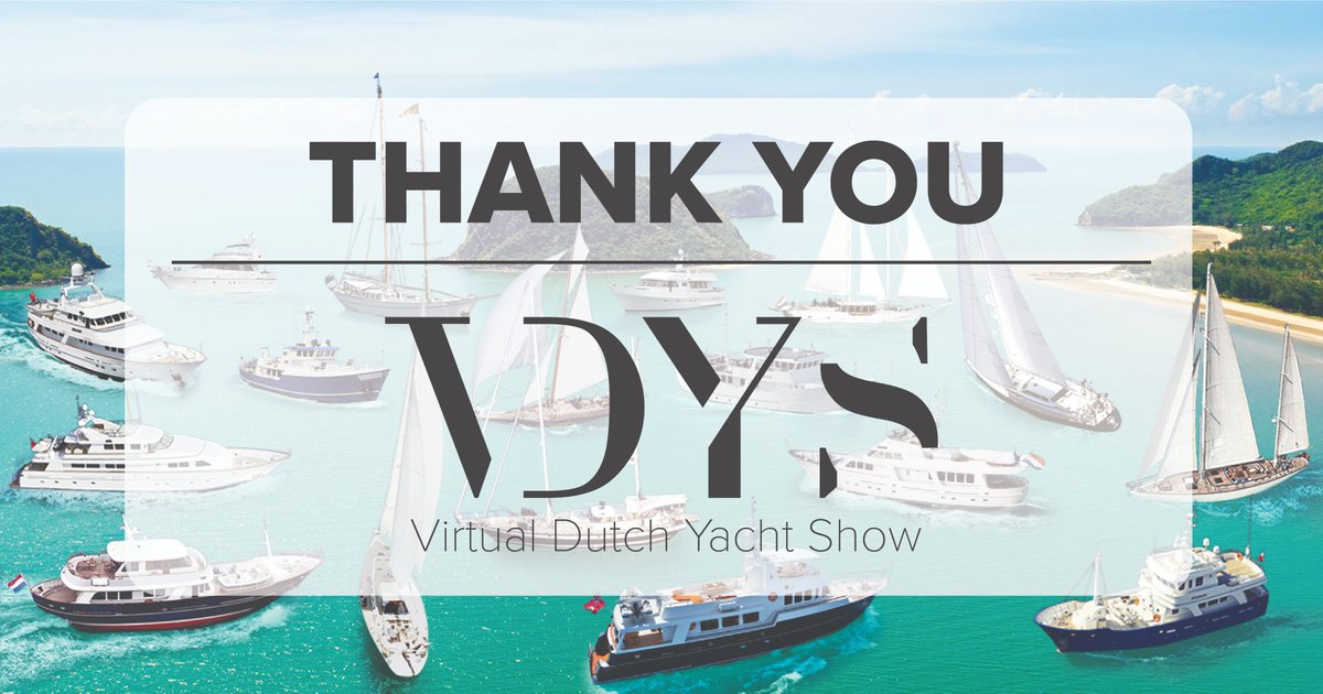 THE SECOND EDITION OF THE VIRTUAL DUTCH YACHT SHOW HAS ENDED We want to thank for making this second edition very successful. We enjoyed your positive reactions and enthusiasm. You still have the opportunity to learn more about our