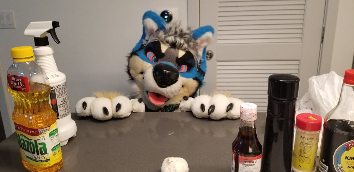 I was trying to cook Thai food the other day and this PUNK kept stealing all my ingredients >:c at least he's cute.....