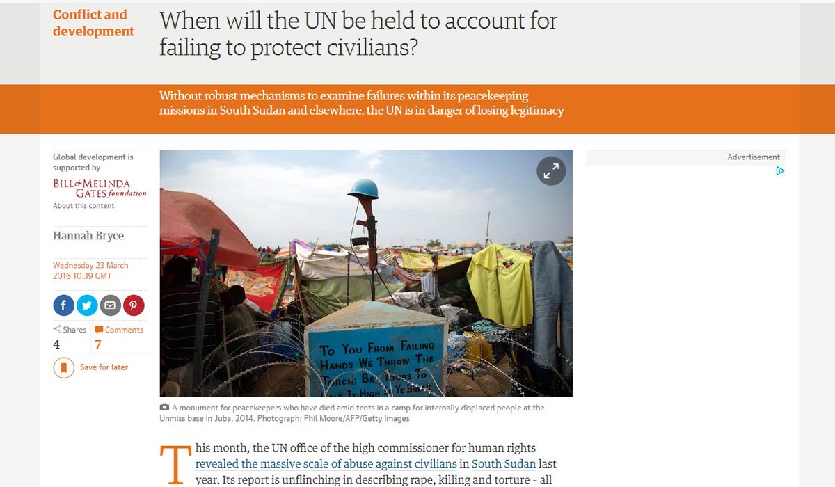 When will the UN be held to account for failing to protect civilians? @hannahekbryce: http://cht.hm/1XMobxP pic.twitter.com/gDuSy5ILnE