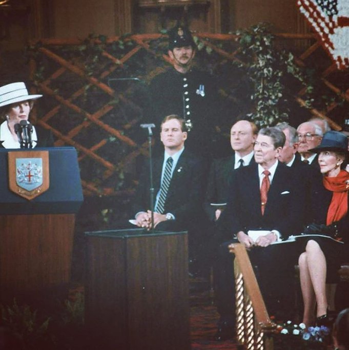 Reagan listens to Thatcher speaking at a Chatham House event on the future of East-West relations (1988) https://www.instagram.com/chathamhouse_org/ …pic.twitter.com/vmJMeCbvoW