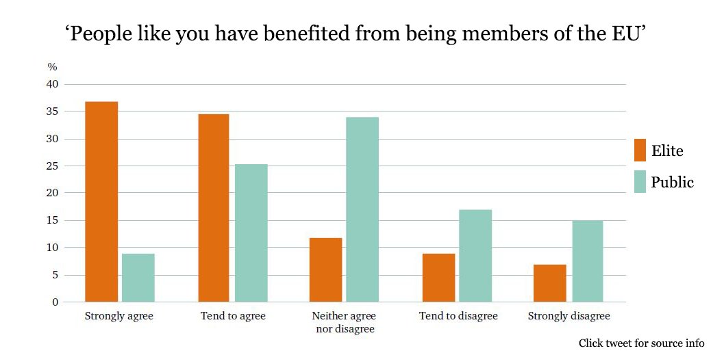 Only 34% of the public feel they have benefited from the EU, compared with 71% of the elite, new survey shows http://cht.hm/2svaBqF pic.twitter.com/6xDoCjBu4w