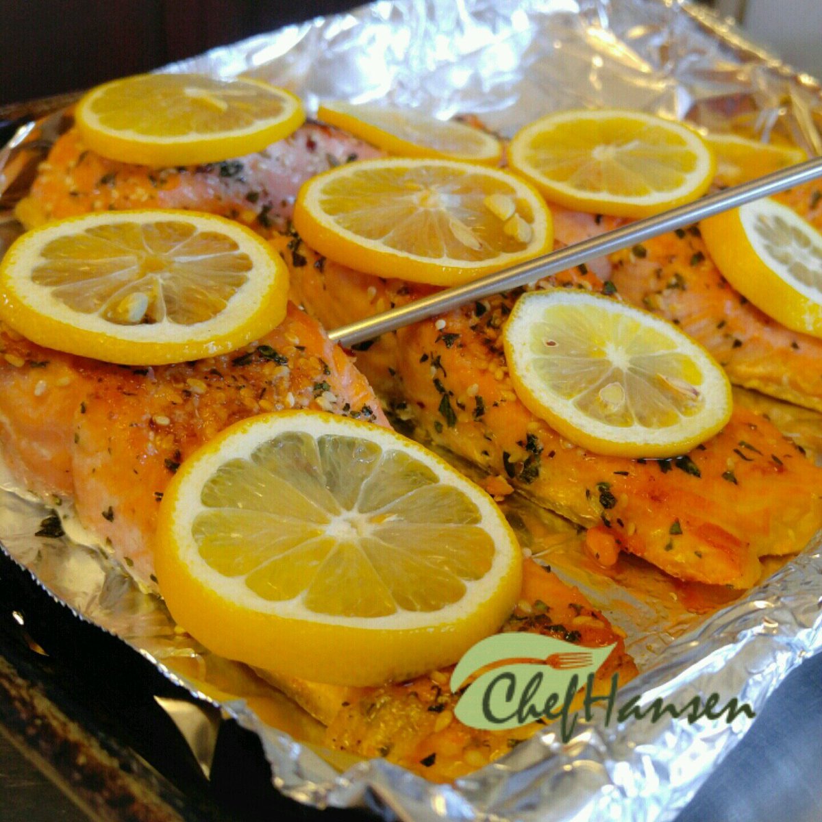 Spiced Lemon Salmon recipe on blog http://www.chefhansen.com
