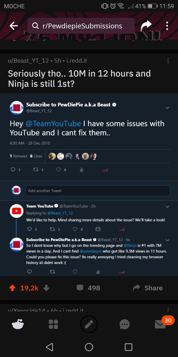 @Ninja is #1 with 7M views in a day. And I cant find@pewdiepie who got like 9.3M views in 11 hours. Could you please fix this issue? Its really annoying I tried cleaning my browser history id didnt work :(5 replies 22 retweets 178 likes -