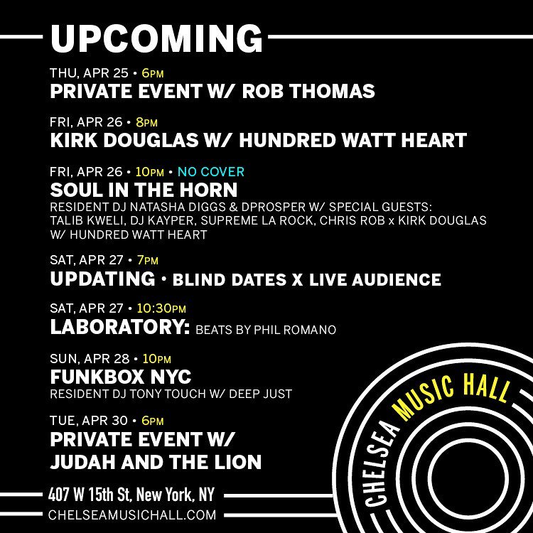#CMH@RobThomas • @CaptainKirkDouglas •@soulinthehorn@natashadiggs@TalibKweli •@KayperOfficial •@supremelarock •@chrisrobonline •@brunchmedia •@LABoratory@FUNKBOXNYC •@DJTONYTOUCH •@judahandthelion