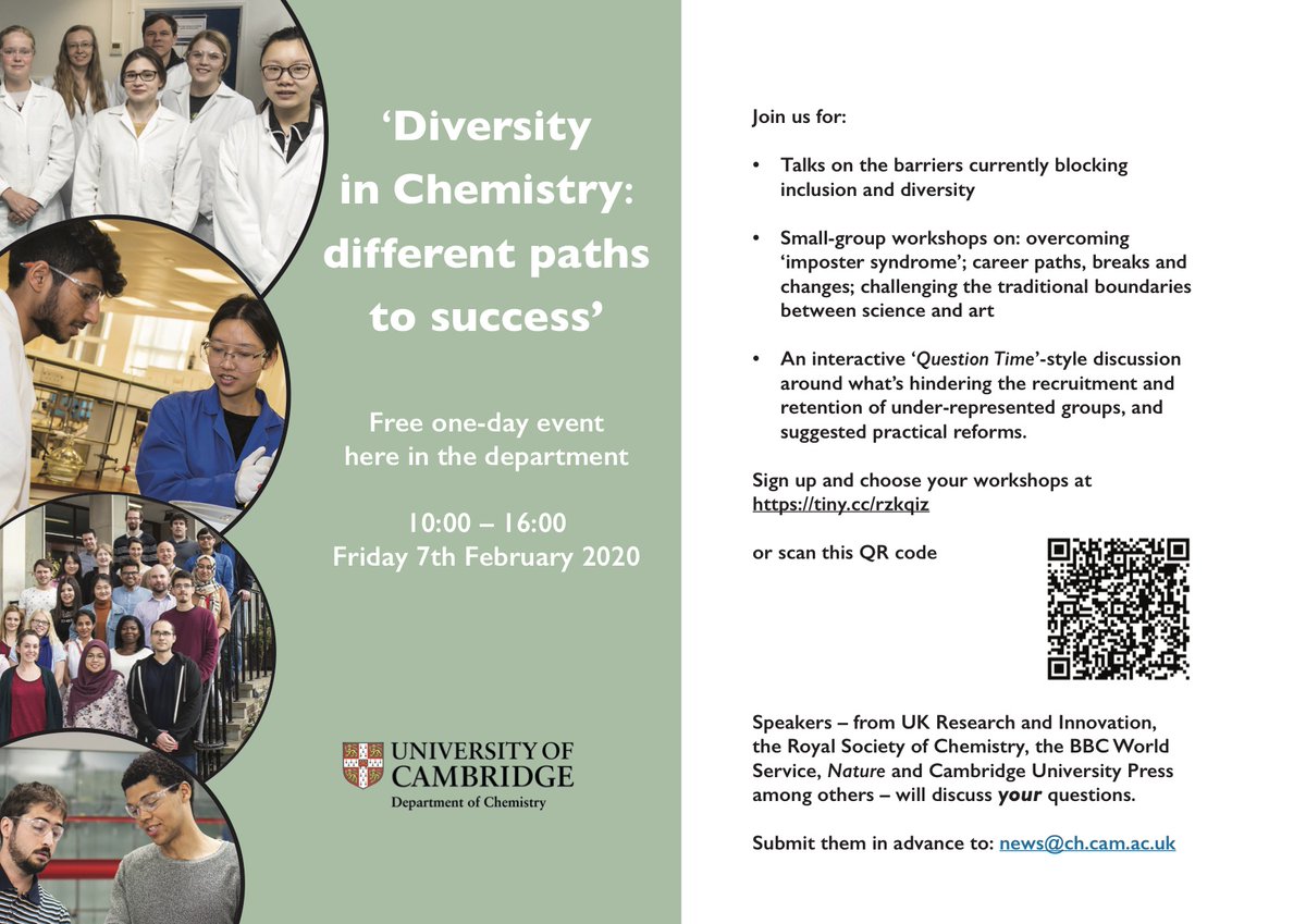 @RoySocChem and@unicamcareers coming to our 7 February event 'Diversity in Chemistry: Different Paths to Success'. We'll explore what's hindering recruitment of under-represented groups and hold a workshop on career paths, breaks and changes.pic.twitter.com/vfAYCXIwj5