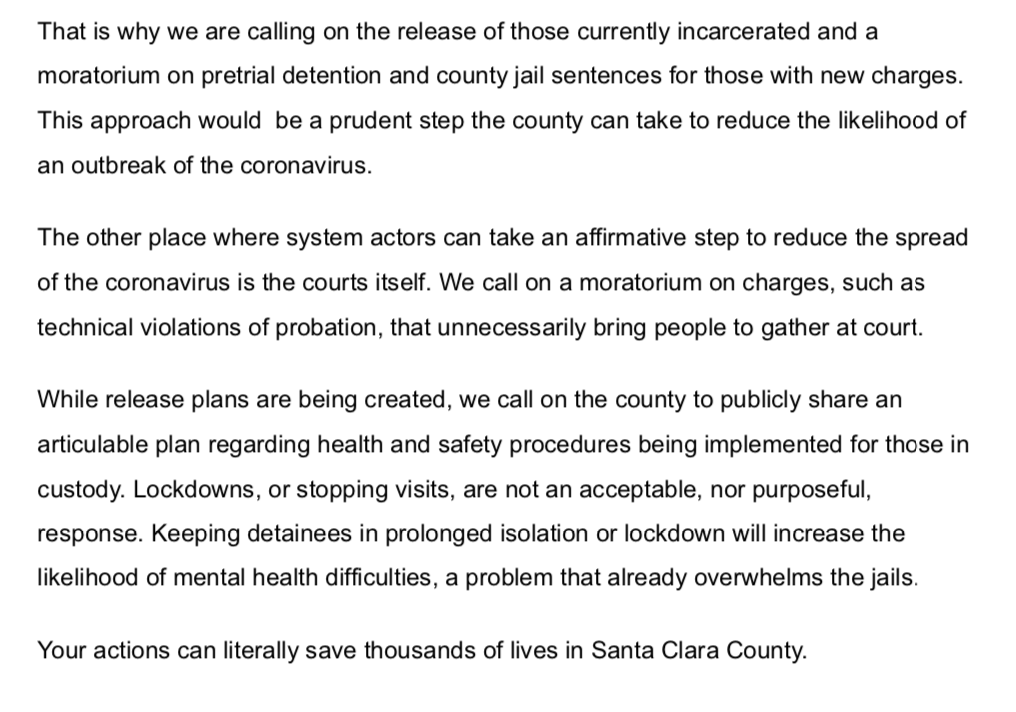 @svdebug in California wrote this letter calling for a moratorium on pretrial detention: https://twitter.com/svdebug/status/1238563865710833665 …#StopCOVID19inJails