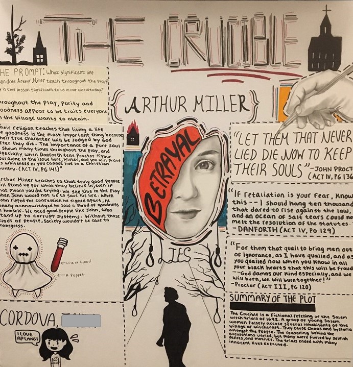 Take a look at some of the spectacular work that's going on in Ms. Lawrence's AP English language & composition class. Junior Natalia rocked this extra credit project on The Crucible!