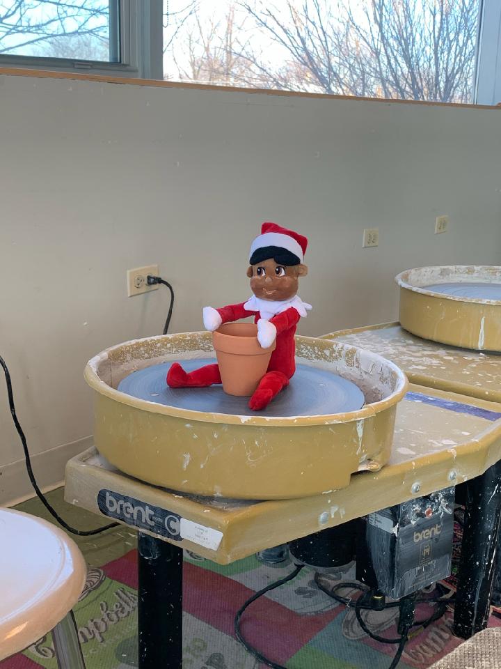 Today, Elfie EagleOwl snuck into Ms. Moen's art room to create some pottery! Then, he chilled in the hallway waiting for students to come back.