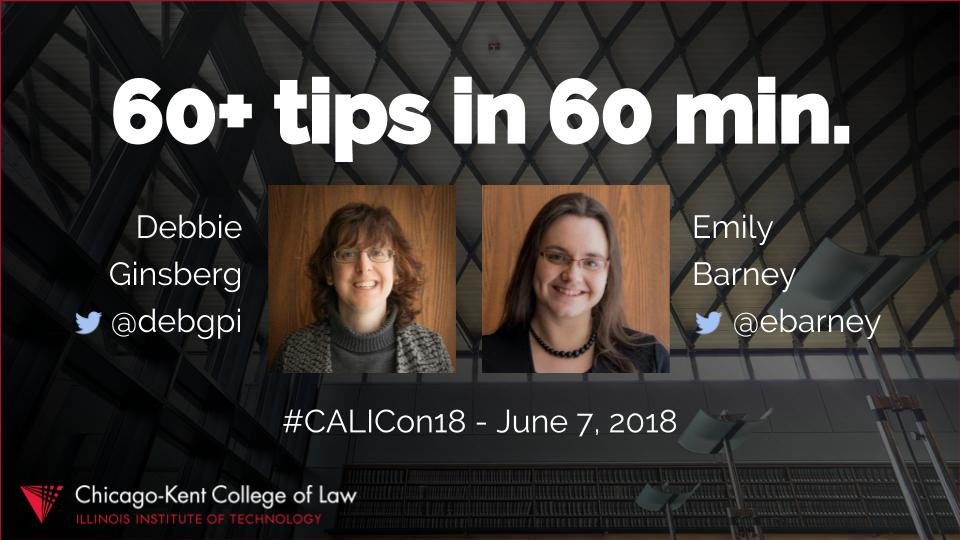 Our #legaltech librarians @debgpi and @ebarney shared 60+ tech tips at the #calicon18 conference in June.