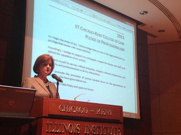 Justice Maureen Connors '79 speaks to the students before the Pledge of Professionalism. #ckbeginspic.twitter.com/u6mpxjBVXm