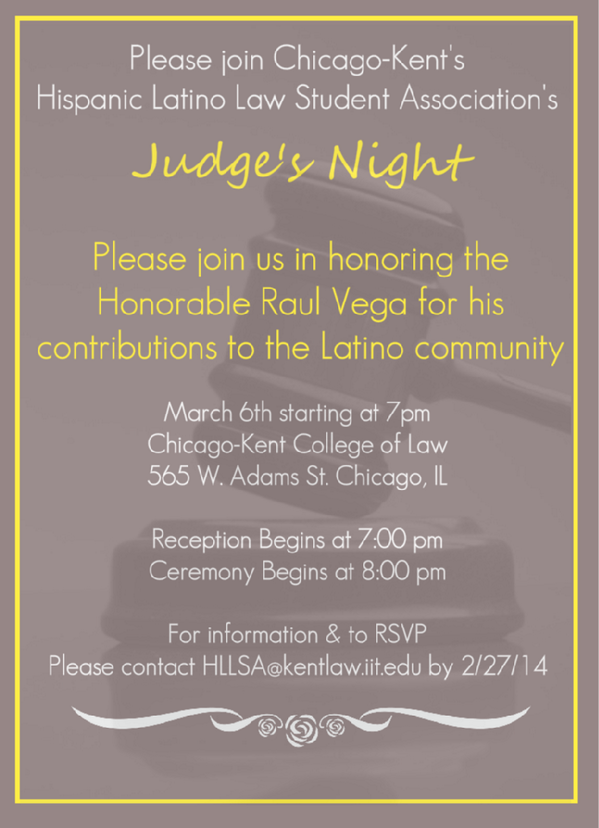 Join the Hispanic Latino Law Student Association Thursday as they honor Judge Raul Vega. It's not too late to RSVP!pic.twitter.com/wTUi2cjsrw