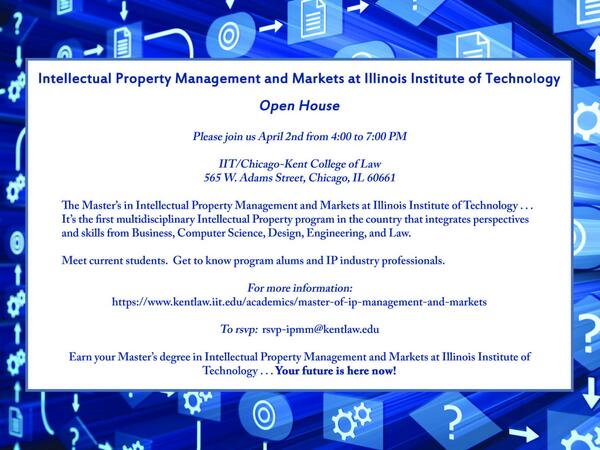 Join us tomorrow for an open house to discover our Master's in Intellectual Property Management and Markets program.pic.twitter.com/9lDs7V7Gax
