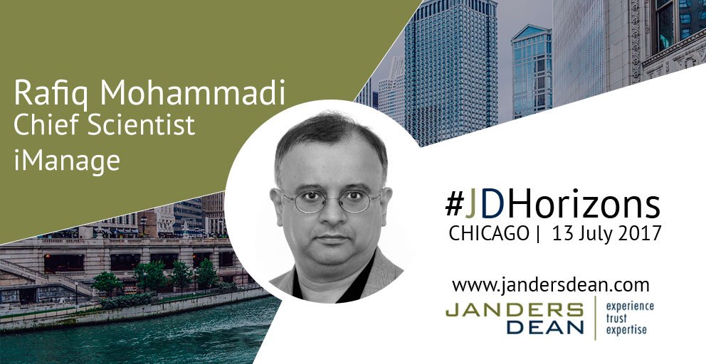 .@imanageinc document mgmt since Oct '95, now w/ #machinelearning. Effectiveness = productivity, variety of tasks, use client data #JDCK17
