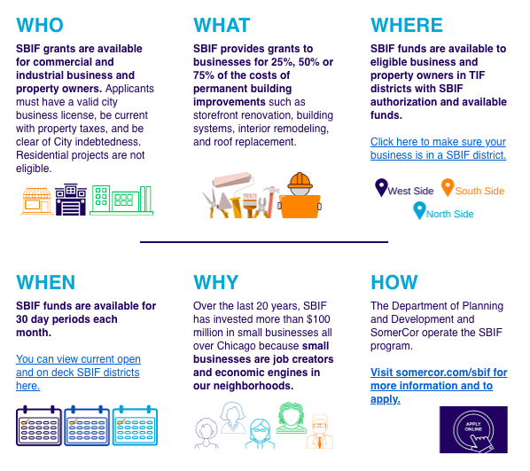 REMINDER: Applications are now being accepted for the Small Business Improvement Fund (SBIF) in 9 TIF districts. Applications will open in an additional 8 TIF districts next month. For more information or to register for an upcoming info session: https://somercor.com/2020/07/summber-sbif-rollouts-2020/ …pic.twitter.com/UZsw2xTM2n