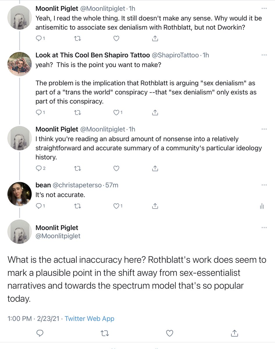 This is one of the frustrating things about the whole conspiracy theory of "Gender Ideology" that I've written about, that numerous others have written about. Even if these people move on to accepting that Butler was largely the person who popularised what they call...https://twitter.com/christapeterso/status/1364339840205131777 …