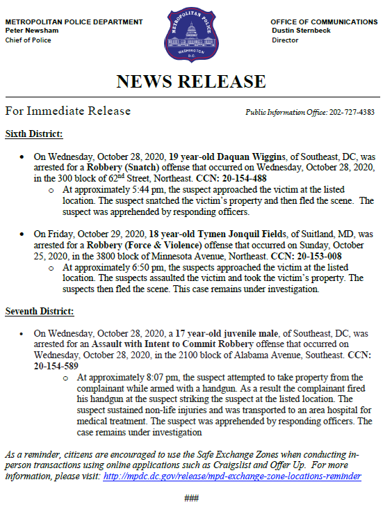 MPD announces arrests have been made in reference to Robbery offenses that occurred in the District. Thank you to all who assisted in making DC safer with these arrests! Full release: http://bit.ly/3oL3cjx pic.twitter.com/NBcVMUKdHW