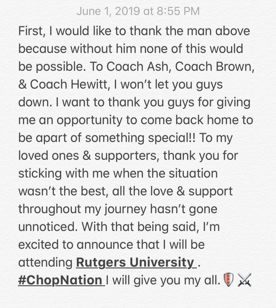 @GregSchiano, I am blessed to receive my first offer from Rutgers University!!!#CHOP
