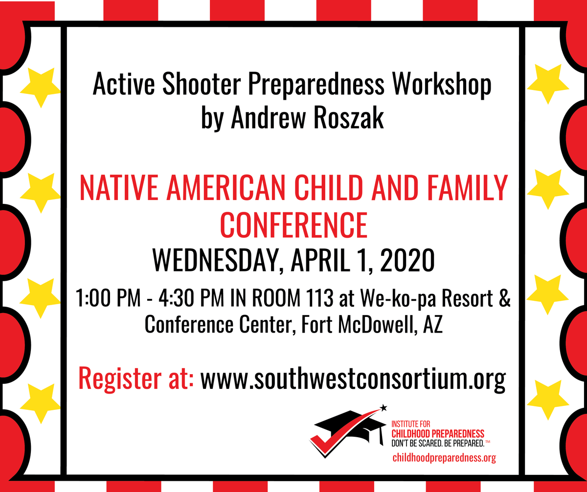 @AndyRoszak is conducting an#activeshooterpreparedness workshop at the Native American Child & Family Conference on Wednesday, April 1, 2020 in Fort McDowell, AZ.#conference#headstart Register today: http://ow.ly/g1AD50xjSf4 pic.twitter.com/7lFI3HF86k