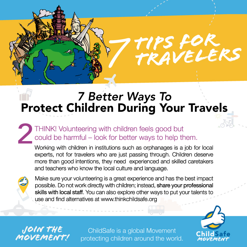 #Volunteers Tip 4 - THINK! Always protect children and put their safety first. Working with children in orphanages or schools is a job for local experts, not for unqualified volunteers who are just passing through. Learn more here - http://thinkchildsafe.org/volunteers/ pic.twitter.com/GwP4e5gEUz