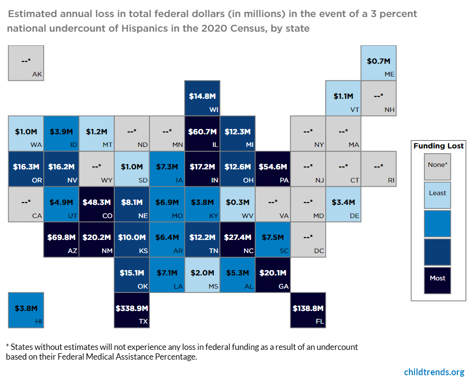 New research estimates that Colorado could lose $48–$193 million in annual federal funding for 5 critical child and family programs due to a 3%, 6%, or 12% undercount of Hispanics on the #2020Census. https://buff.ly/2yYwTFo pic.twitter.com/bYctIk9Sey