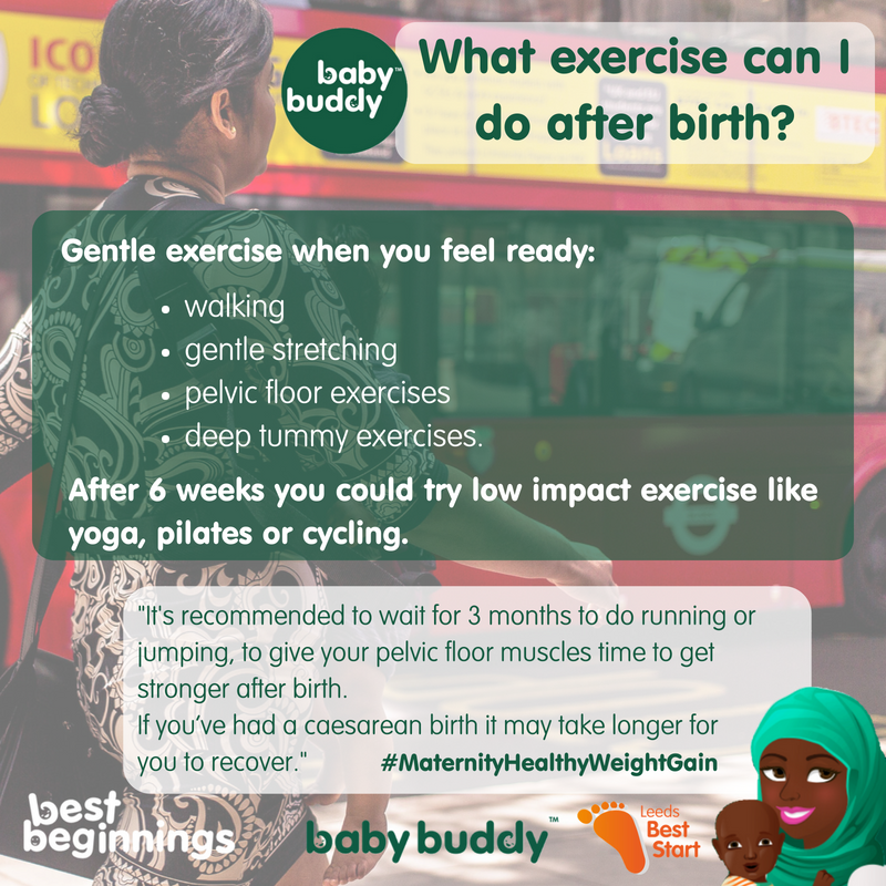 Being active helps your body to recover and helps you to relax. Baby Buddy