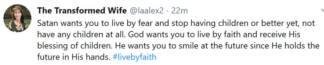 @laalex2 You might want to stop having children or better yet, not have any children at all. Others want you to have children out of fear. Smile at your future, since you hold it in your own hands.#doyou#thetransformedwifepic.twitter.com/9BfEZUKKkY