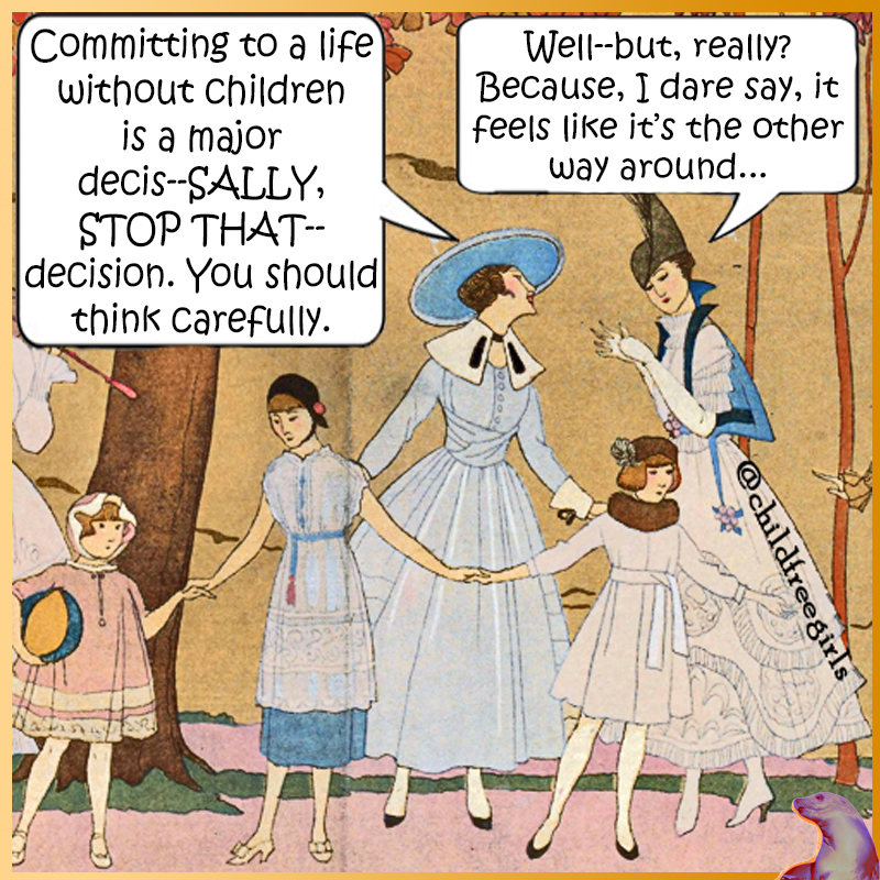 It isn't just overt messages that brainwash us to believe motherhood is the baseline path to happiness. It's subtle language and implication. Here's a reversed example of what we hear all the time (even from