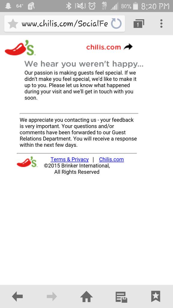 @Chilis we wanted an unforgettable night. It sure was#disappointed our birthday gal was sure upsetpic.twitter.com/uDXHP7ceqy