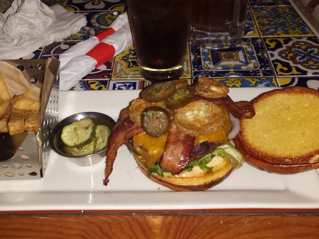 @Chilis bacon burger with fried pickles. NY kind of burgerpic.twitter.com/AHmHlJk61U – at Chili's Grill & Bar