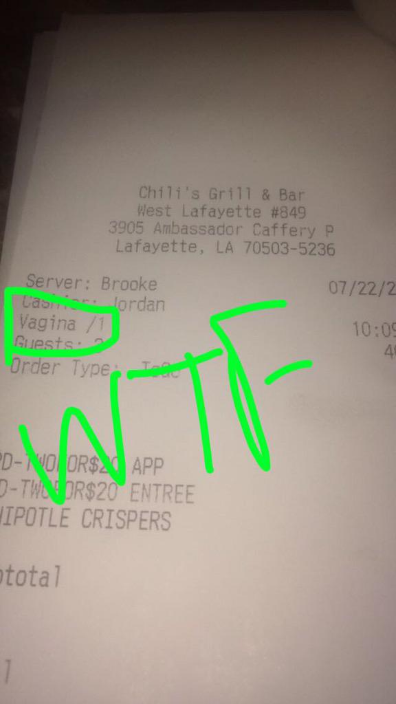 Chilis you should be embarrassed for typing this up on my receipt I've gotten lastnight . @Chilispic.twitter.com/FeeOM4lAda