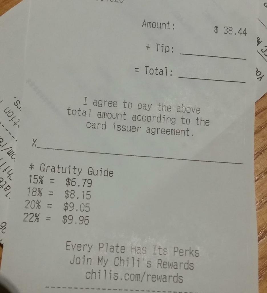 Hey @Chilis, your gratuity calculations are off. May want to check it. Got this from a friend in NYC. #foodpic.twitter.com/w7MeBhl0UX