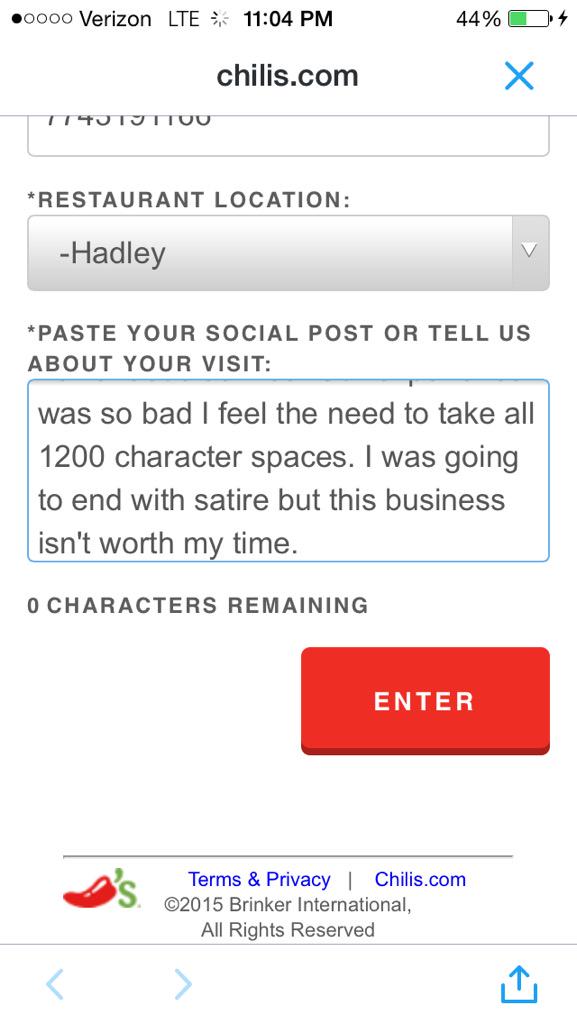 @Chilis You're lucky I was constrained to 1200 characters. Consider yourself permanently boycotted.pic.twitter.com/iihKxyRVWu
