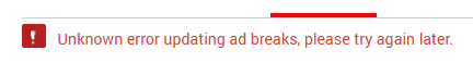 @TeamYouTube I haven't been able to add ad breaks to videos all day. Is this a site wide issue?pic.twitter.com/ssfFmw4cBl