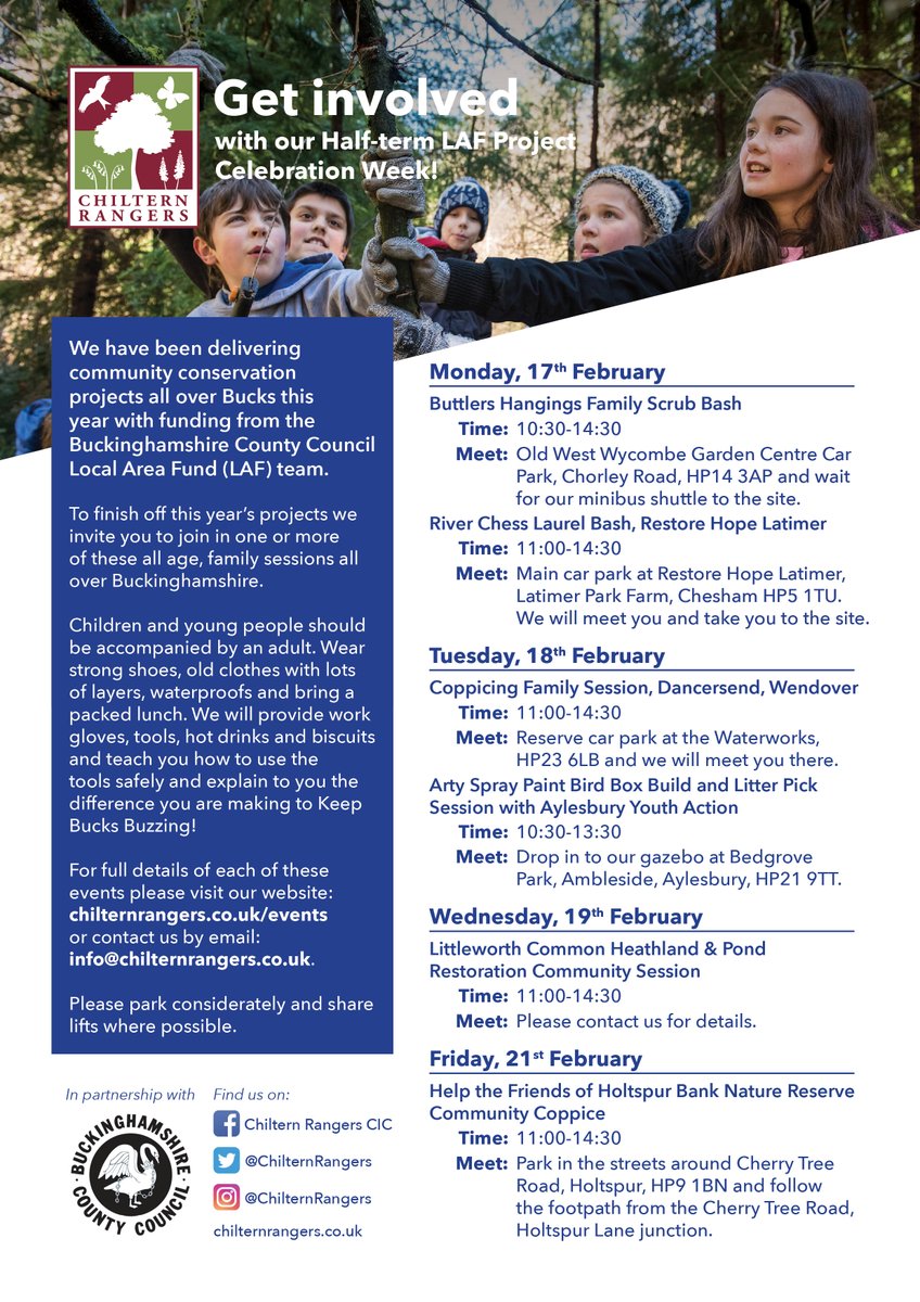@chilternrangers have some great events planned for half-term. Are you looking for a rewarding way to spend a few hours with the kids? If so, check out the projects you can get involved in. More info at https://chilternrangers.co.uk/events/