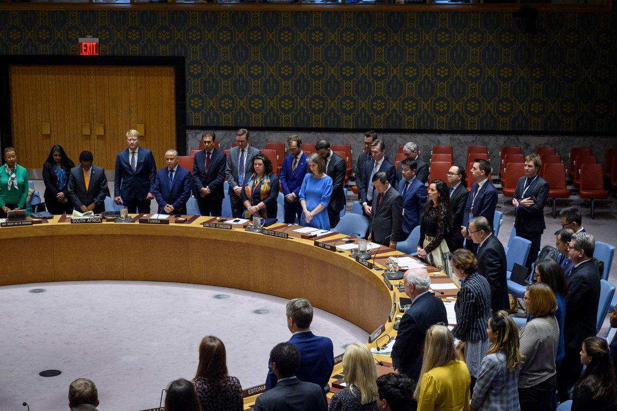 At the beginning of the Security Council meeting I chaired this afternoon, Council members observed a minute of silence in honour of Mr. Javier Pérez de Cuéllar, former Secretary-General of the United Nations. We do cherish his great contribution to the UN.pic.twitter.com/QhGVOsNk7W