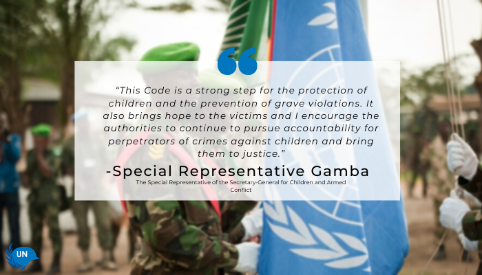 #ICYMI: The Central African Republic recently adopted a Child Protection Code that criminalizes the recruitment and use of children by armed groups. #A4P @UN_CAR @childreninwar https://childrenandarmedconflict.un.org/2020/03/car-un-official-welcomes-new-legislation-criminalizing-child-recruitment/ … pic.twitter.com/aUwFubpcIj