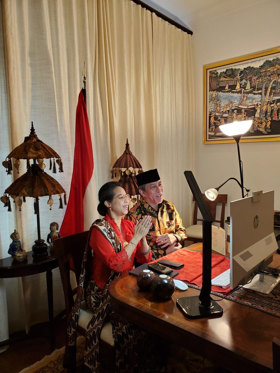 This couple saying “I do” online 💕 The bride is the daughter of our mission’s staff. Alhamdulillah, life goes on in times of emergency. @yantidjani and I virtually sent them the warmest wishes as they build their new lives together! #StayHome #FightCovid19 #IniDiplomasipic.twitter.com/8A8CTYIBjk