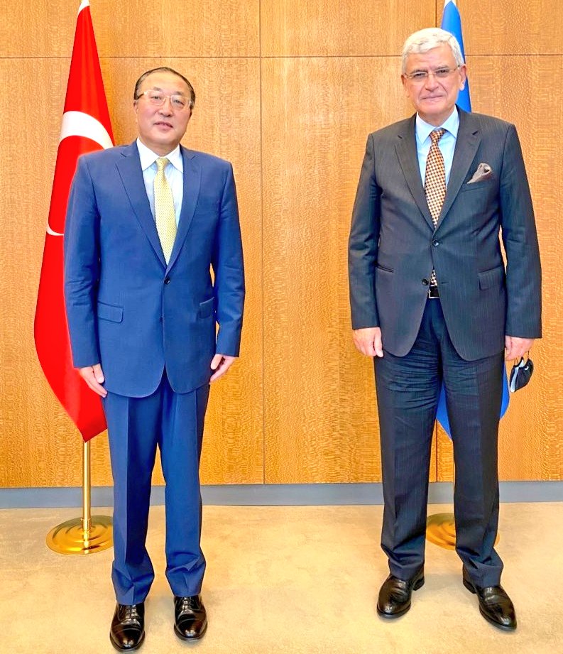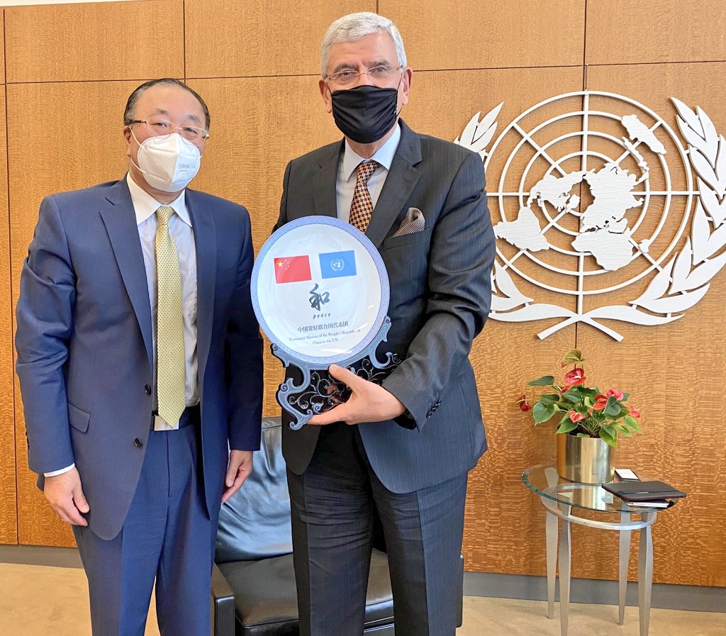 Comprehensive meeting with H.E. Mr. Zhang Jun, Permanent Representative of @Chinamission2un. Thanks for the useful discussion on the need for a renewed collective commitment to the @UN and to tackling global threats such as #COVID19 with resolve. @ChinaAmbUN.pic.twitter.com/e3iGrRsUjK