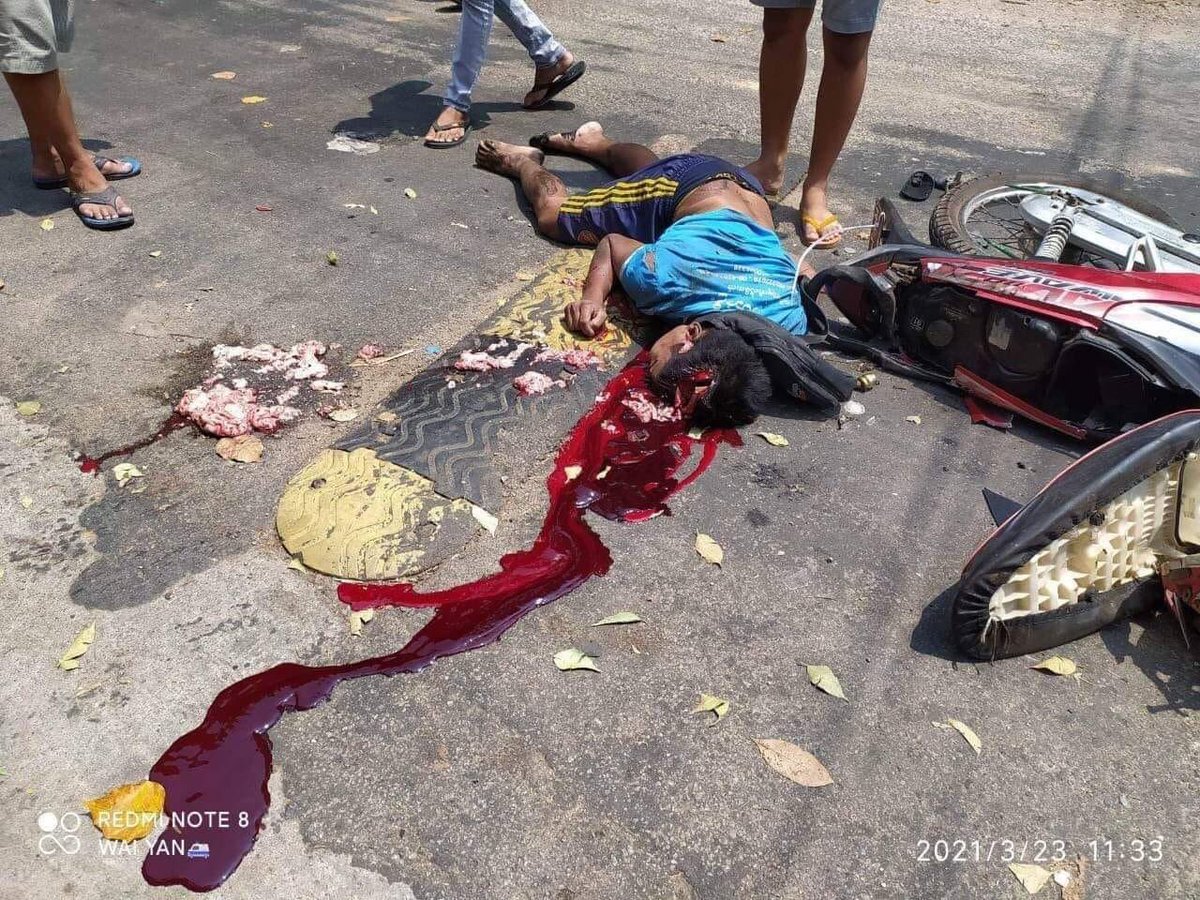 Graphic Tw // dead Happy Spring for you. But here Military trunk hit and killed a civilian in Dawei. Myanmar. Who will stop these inhumane acts in Myanmar? @mfa_russia @RussiaUN #WhatsHappeninglnMyanmarpic.twitter.com/1Bx3G1V9eP