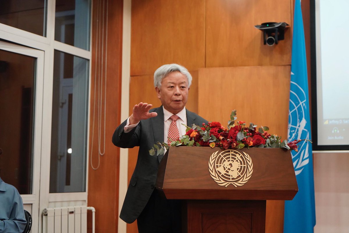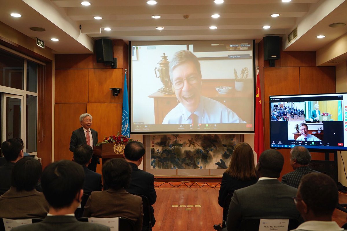 “China practices multilateralism by deeds not by words” says Jin Liqun, President of @AIIB_Official, catching up with old colleague Professor @JeffDSachs for conversation co-hosted with @UNinChina 🇺🇳🇨🇳 pic.twitter.com/3gEvhgxedX
