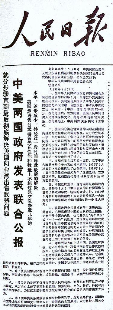 37 years ago today, #China and the #US signed the 17 August Joint Communique, which states that the US: - Does not seek to carry out a long-term policy of arms sales to #Taiwan - Its arms sales to Taiwan will not exceed the level of those supplied in recent years since 1979pic.twitter.com/6JlY8A0EZm
