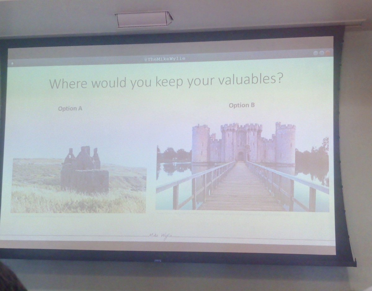 Nice use of medieval imaginery in #appseccali presentation about continious cloud security monitoring by @TheMikeWylie.pic.twitter.com/RbLfRHzIRJ