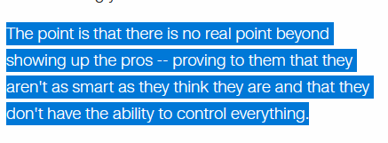 So now people own an overvalued stock that is going to crash. If that’s showing the pros they don’t know everything, cutting off your nose is a good way to show your face who is in charge.