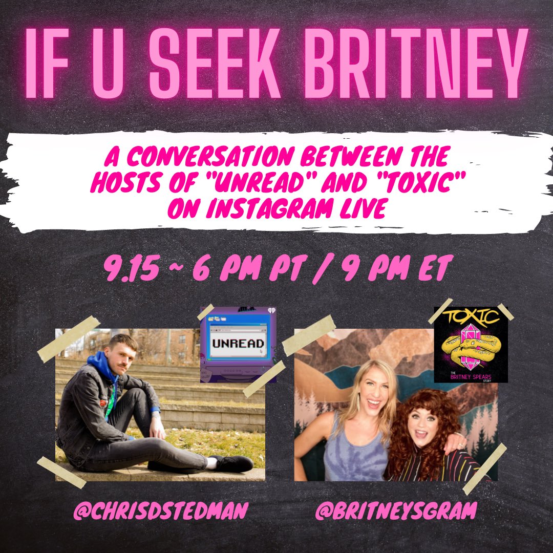 Join us on our IG live tonight, we’ll discuss our respective Britney podcasts with Unread host